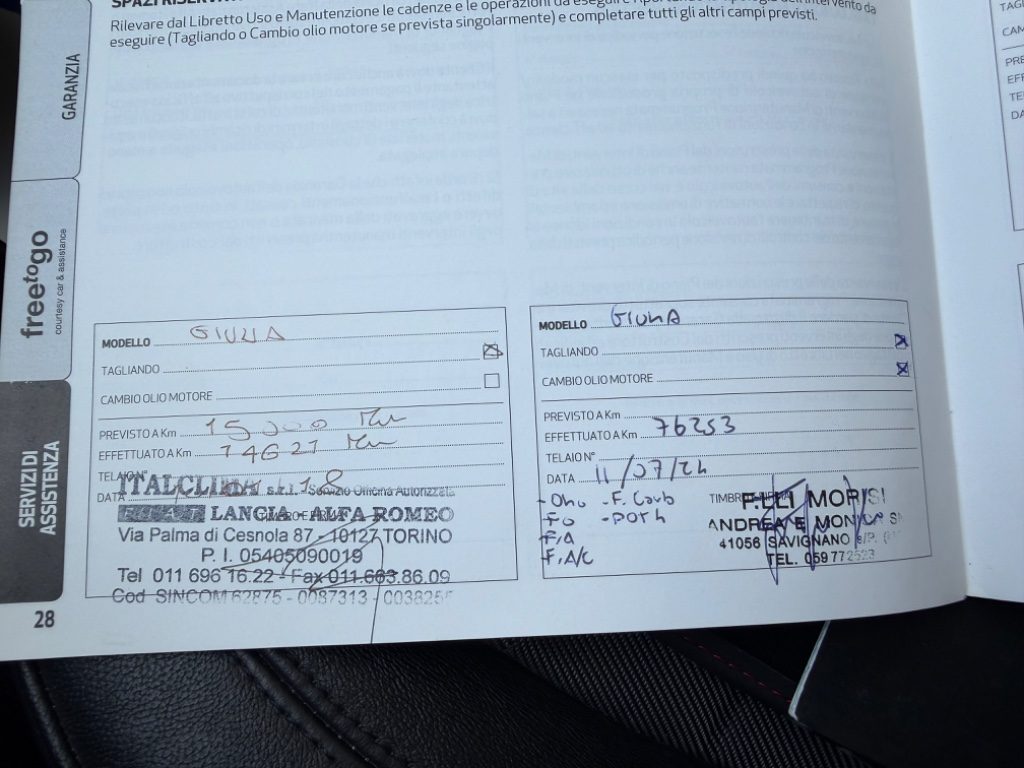 INSERIAMO LA TARGA E LE FOTO DEL LIBRETTO DEI TAGLIANDI A DIMOSTRAZIONE DI QUANTI CHILOMETRI HA “REALMENTE ” L’AUTO E SE ABBIAMO IN ITALIA OLTRE 580 RECENSIONI A 5 STELLE PREMIATI CON L’ECCELLENZA NEL 2017-2018-2019-2020-2021-2022-2023-2024 E 2025 CI SARA’ UN MOTIVO?